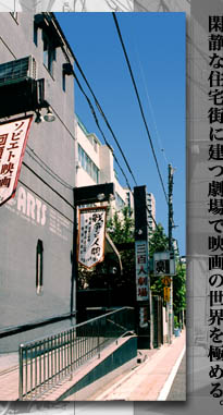 江戸時代は武家屋敷があった場所で、現在も閑静な住宅地として知られる東京、山手線内に位置する千石。都営地下鉄“千石駅”を降り、交通量の激しい白山通りから一歩路地に入ると、メイン通りの慌ただしさから一転した静かな住宅街がある。その路地を入って間もなく、壁面を黒く塗られた建物が目に飛び込んでくる。“劇団昴”を要する(財)現代演劇協会が運営する劇場『三百人劇場』だ。1974年に演劇専門の劇場として設立されたコチラでは、オープン当初から公演がない時期(ゴールデンウィーク・夏休み・正月)に映画の上映を行っている。上映内容は様々なジャンルの特集を組んでおり、中でも“全貌シリーズ”と銘打った監督や国、最近では撮影監督に焦点を絞って一挙に数十本の作品を上映する企画が人気を博している。設立当時は、まだミニシアターが少なくバウシリーズの単独上映も行っていたが「実は、ある意味映画館としての役割は果たしてしまっているんです。ミニシアターが乱立する現在では、むしろ企画上映等を行って名画座の役割を担おうと上映しているわけです。」と語ってくれたのは上映作品の選定等を手掛けているプロデューサーの大矢敏氏だ。作品(特集)の選定基準は「勿論、お客様が来てくれる作品を考えなくてはならないのですが、とにかく昔の作品は資料が無い…まずは狙いをつけて、それから作品を観るようにしているのですが、作品によってはビデオも無かったり、どういう映画がさっぱり判らない物があったりする。何とかインターネットで不足している部分を収集したりして(笑)判断基準にしています。」と苦労を語る。それだけに、これは面白そうだと判断してニュープリント上映した時にお客様の反応が良かった時は喜びと安堵で胸を撫で下ろすという。こうしたニュープリントは劇場が自費で行っており、かつて川島雄三監督特集で“とんかつ一代”という隠れた名作を思い切ってニュープリントにしたところ問い合わせが殺到し、思いもかけないヒットになったという。 これぞ!という作品に関しては前述の通りニュープリントを焼くものの、永く保管されていたままのプリントを掛けざるを得ない事も多く、上映する際の苦心は数えきれない。 |