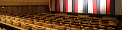 広島市内を東西に走る相生通りの中心に位置する八丁堀は、百貨店や様々な専門店が軒を連ね、休日には多くの買い物客で賑わう市内屈指の繁華街だ。電鉄が駅に滑り込み電車のドアが開いた途端に流れ出す人の波。ここを訪れる人々の年齢層も若者からお年寄りまで幅広く、昼夜問わず街は活気に溢れている。そのど真ん中…八丁堀交差点の角に構える堂々たる風格の福屋は戦前より続く広島地盤の老舗百貨店だ。4年前の平成22年11月26日…その福屋8階に映画館がオープンして全国から注目の的となった。エレベーターを降りた途端、目の前に広がる非日常的な空間。エントランス壁面には松の廊下と称される京都東映撮影所で約20年様々な時代劇で使われ、最後に三池崇史監督の“十三人の刺客”でも使われた巨大な襖が来場者を出迎える。固定化された映画館の概念を見事に覆す江戸時代の芝居小屋をイメージして作られた『八丁座』である。 |