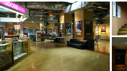 「最初の年が好調だった事もあって、じゃあこのまま地下を全て映画館にしてしまおう!と、翌年7月には機能していなかったゴーカート乗り場を『2号館』『3号館』に改装しました」合わせて休憩所や売店も新設され映画館の様相を呈して来る。「ロビーがとにかく広いので休みのシーズンになると子供たちが走り回っていますよ。ただ…拡張した2館の場内は映画館仕様で作っていないので、天井が低いのが難点ですね」とは言うものの場内は地下にある割には適度な高さは確保されており、こうした適度な狭さに、こっちの方が落ち着いて観易いという人もいる程。ちなみに館名に松竹と入っているが、特に松竹の封切館だったわけではなく、青森松竹会館のビル名から取った“青森松竹”の姉妹館という事で『青森松竹アムゼ』となった。 |